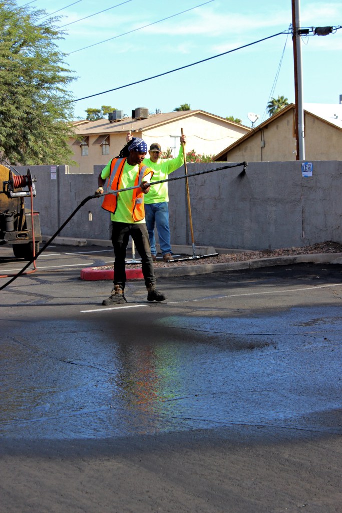 Sealcoating fills surface voids, which reduces exposure to oxygen and UV rays. It also reduces the depth to which oil and gas can penetrate the asphalt. It acts as a waterproofing agent, minimizing the rate that the water enters the asphalt of your driveway or parking lot. As a general rule, you should seal your driveway every three to five years. More specifically, if you can see the color of the individual stones that make up your asphalt surface, you know it is time to fill the cracks and reseal the asphalt. Ideally, you want your sealer to be on your driveway for at least 48 hours before any rain comes down on it.