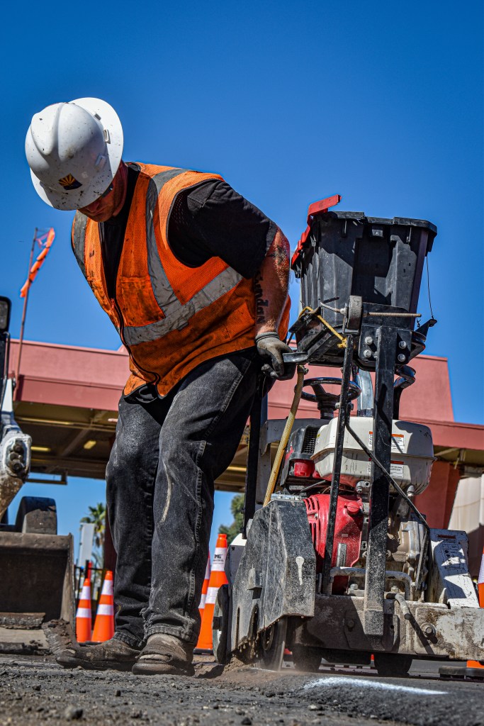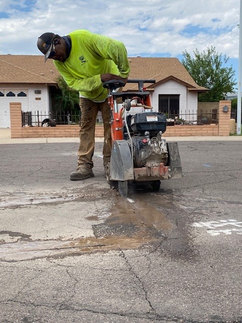 At Arizona Asphalt Repair we use only diamond cutting blades to ensure your saw-cuts are performed to spec, no matter how difficult the cut. We can saw-cut roads, parking lots, sidewalks, concrete curbs for repair and reconstruction, and neat-line old asphalt to give a nice, clean joint line. No matter the size of the job, Arizona Asphalt Repair can provide you with a clean cut quickly.